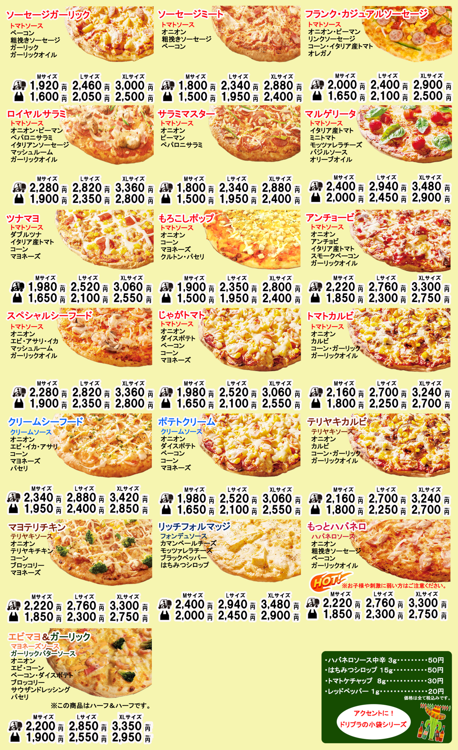 ピザメニュー